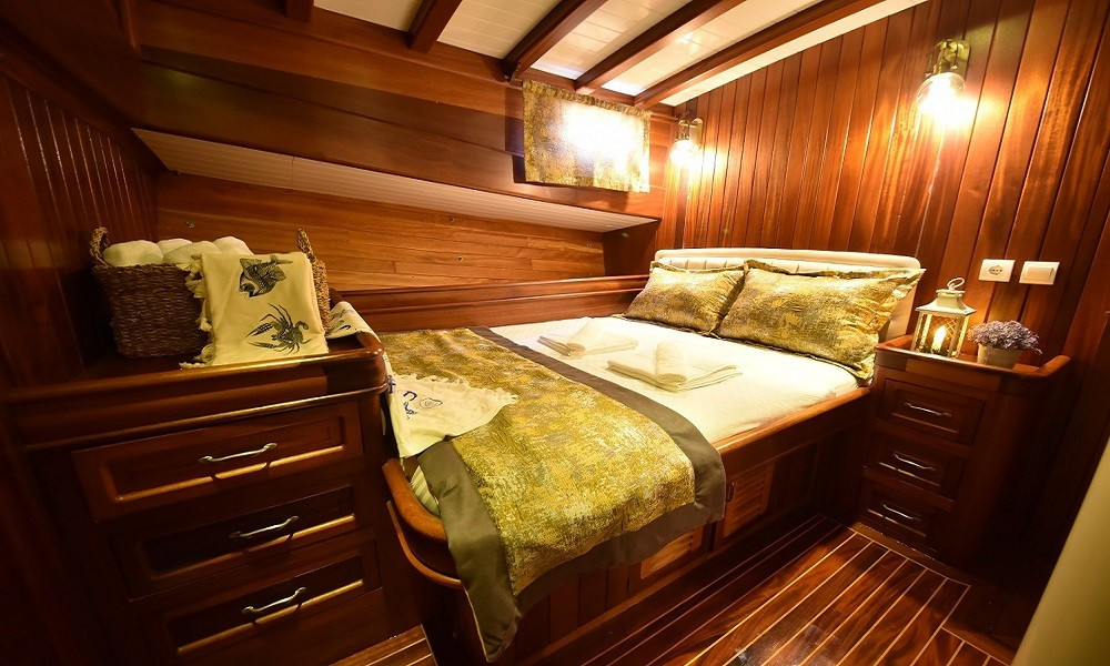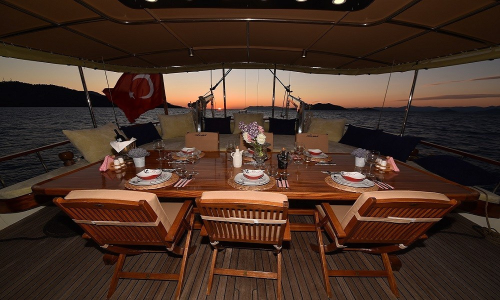 Siz hiç bir şeye karışmadan tatiliniz boyunca size tam pansiyon konaklama sunabiliriz. Bu durumda Standart, Lüks ya da Delüks menülerimizden birini tercih ederek kişi başı günlük 45 ile 65 Euro arasında değişen bir bedel ödeyerek alkollü içecekler hariç herşey dahil tatilinizi yapabilirsiniz. Alkollü içeceklerinizi dilediğiniz şekilde temin edip tekneye getirebilirsiniz.