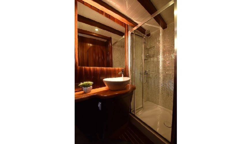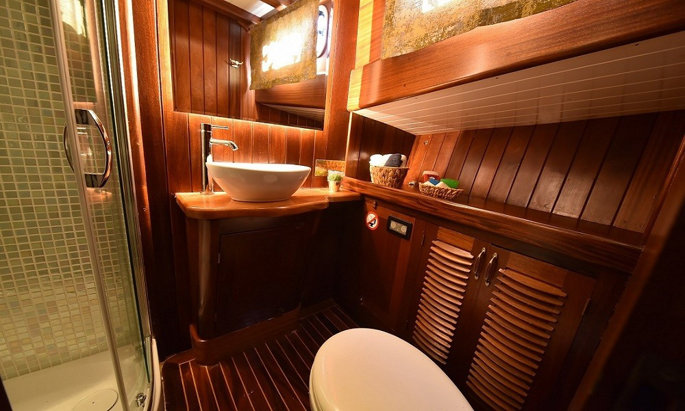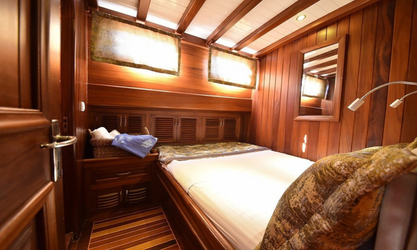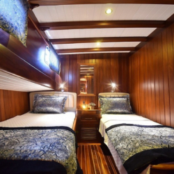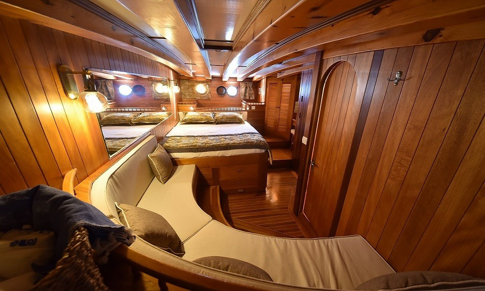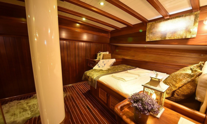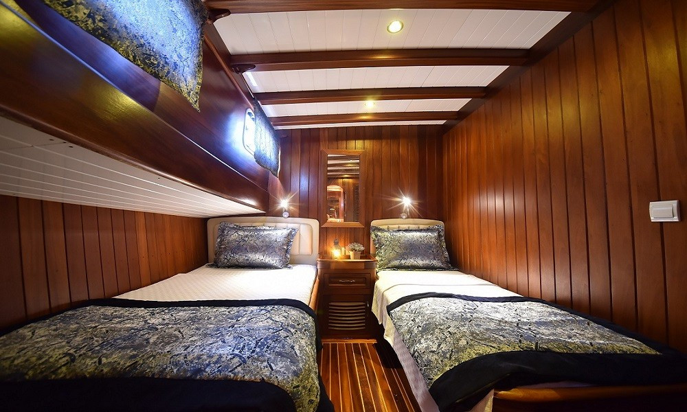 Teknede 1 Master, 3 Double ve 1 Twin kabin yer alır. Tüm kabinlerde klima, duşakabinli özel banyo, ev tipi tuvalet, saç kurutma makinesi ile banyo ve el havluları mevcuttur. Salonda LCD TV, oturma grubu, masa ve müzik sistemi bulunur. Günlük klima kullanım süresi 6 saattir.
