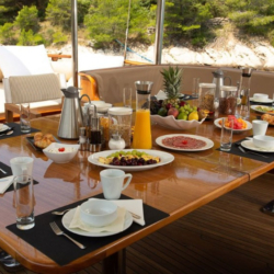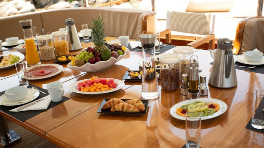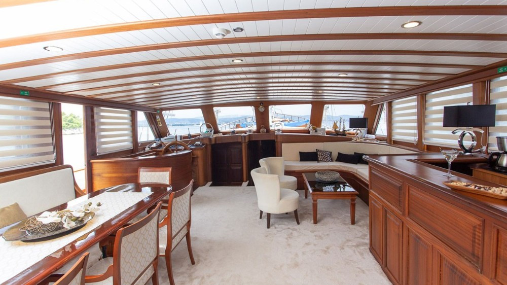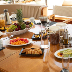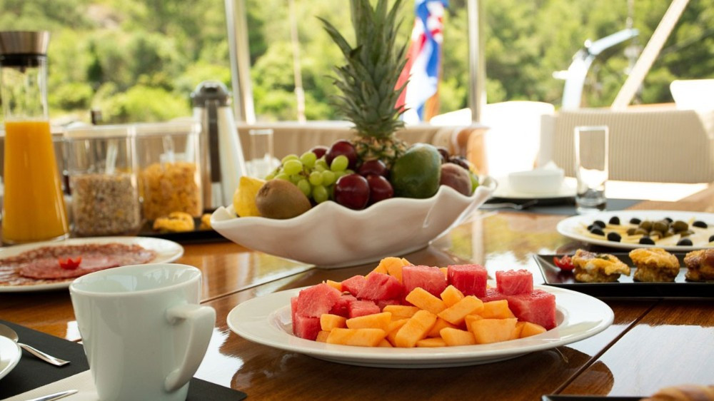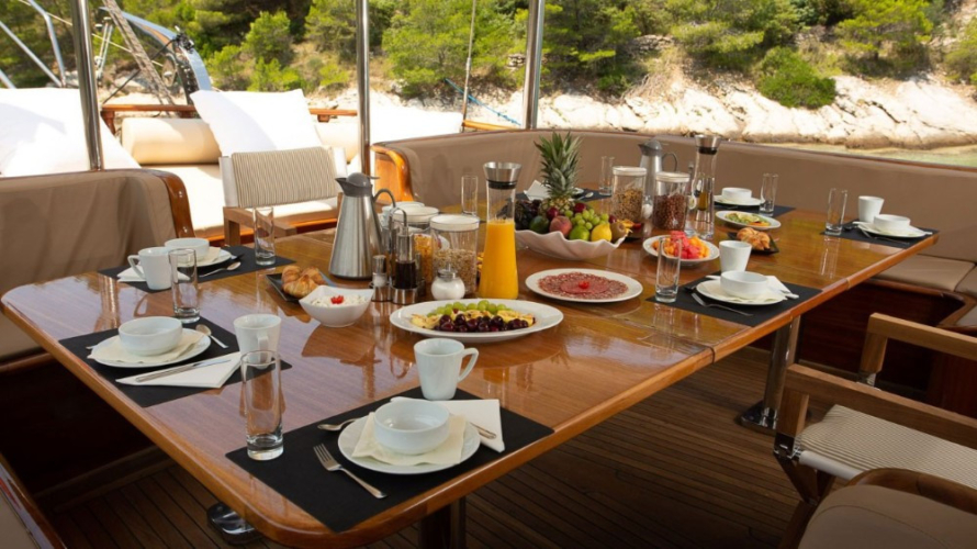 Siz hiç bir şeye karışmadan tatiliniz boyunca size tam pansiyon konaklama sunabiliriz. Bu durumda Standart, Lüks ya da Delüks menülerimizden birini tercih ederek kişi başı günlük 45 ile 65 Euro arasında değişen bir bedel ödeyerek alkollü içecekler hariç herşey dahil tatilinizi yapabilirsiniz. Alkollü içeceklerinizi dilediğiniz şekilde temin edip tekneye getirebilirsiniz.