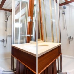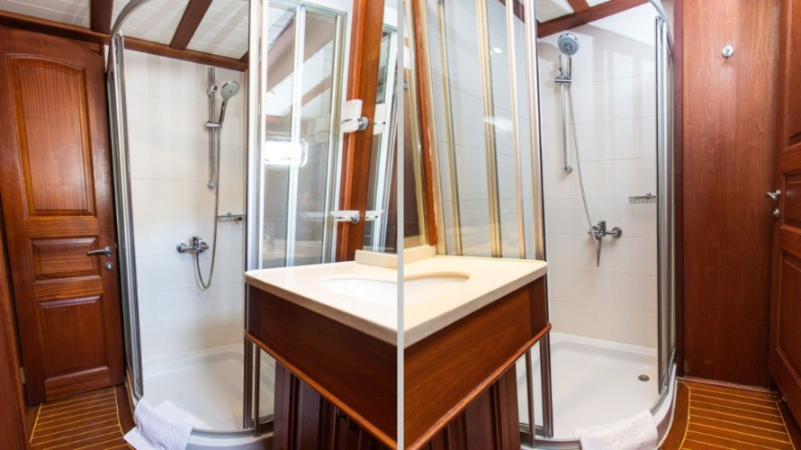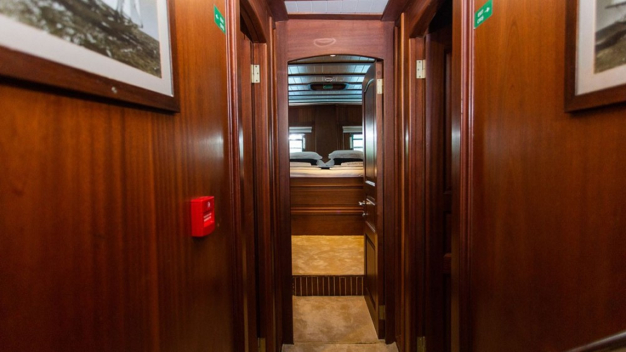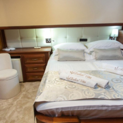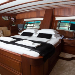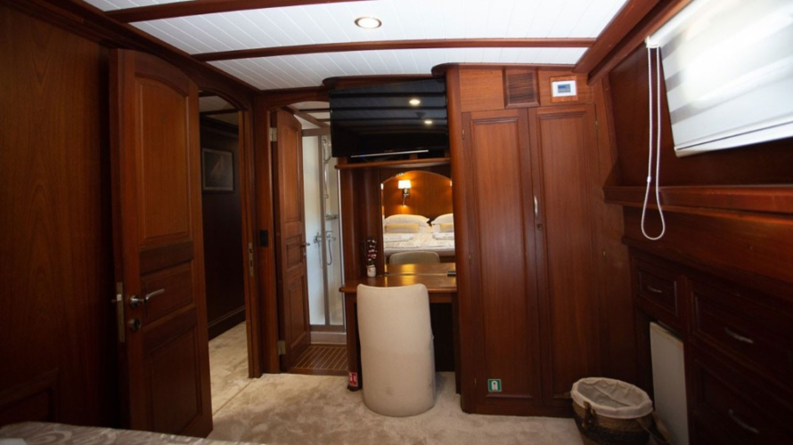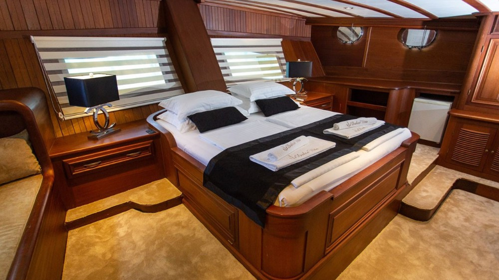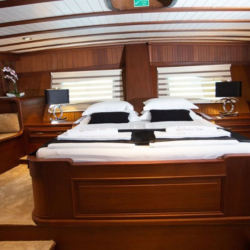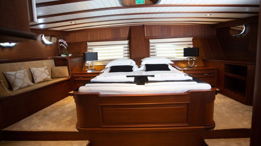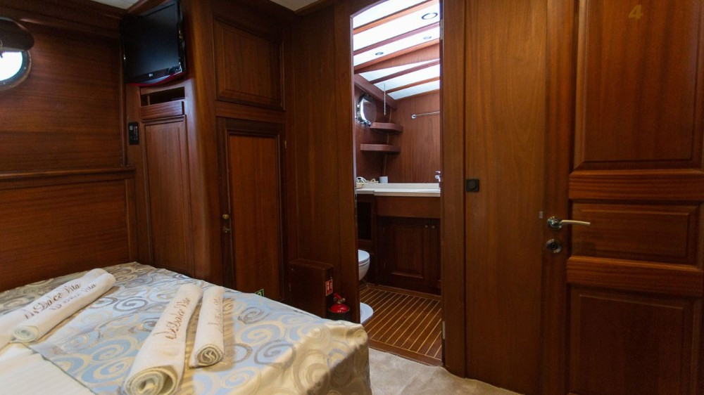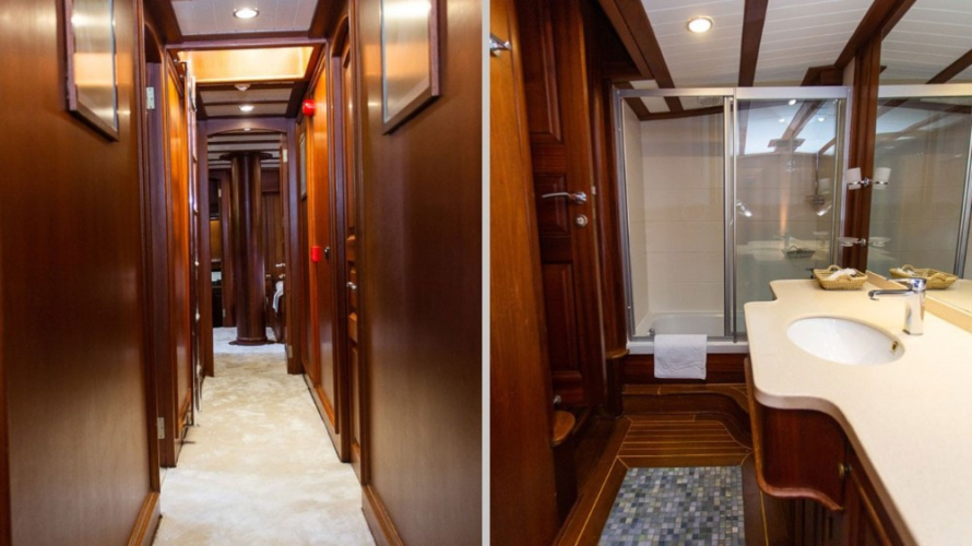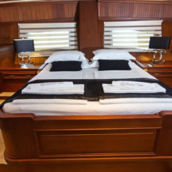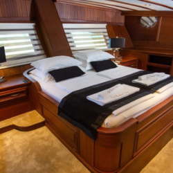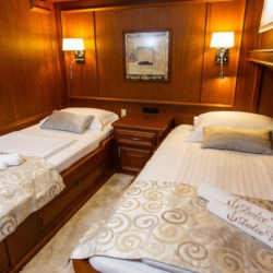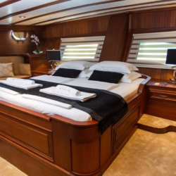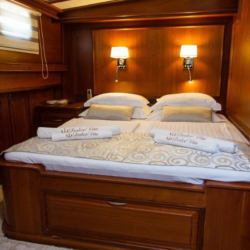6 Kabin: 2 Master, 3 Double, 1 Twin kabin. Tüm kabinlerde klima, duşakabinli banyo, LCD TV/DVD, müzik sistemi, saç kurutma makinesi, banyo ve el havluları.
