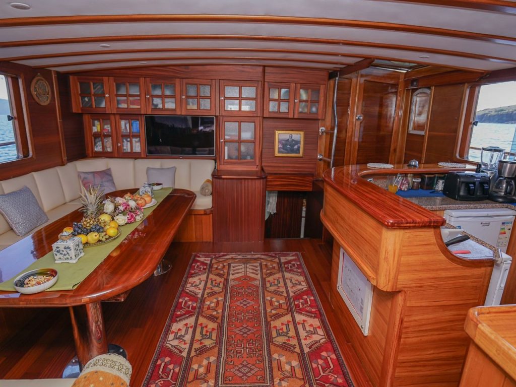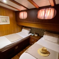 Levent Kaptan 1 gulet, 1 Master Kabin, 1 Double Kabin, 3 Twin Kabin olmak üzere birbirinden şık ve rahat, kendine ait duş, WC ve kliması olan yatımız 5 kamaraya sahiptir.Teknemizde her kabinde klima, duşakabin / wc bulunmaktadır. Ayrıca salonda tv izleme imkanı bulunmakta ve serin havalarda salon yemek masası kullanılabilmektedir. Lüks yatımızın arka güvertede yemek masası, ön güvertede ise bir şeyler atıştırıp, içeceğinizi yudumlayacağınız ön masa bulunmaktadır. Güneşlenme alanı zemininin tik ağacından olması teknemizi güzel gösteren ayrıntılardan bir tanesidir.