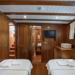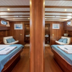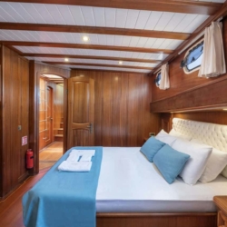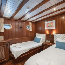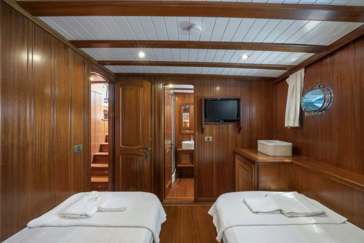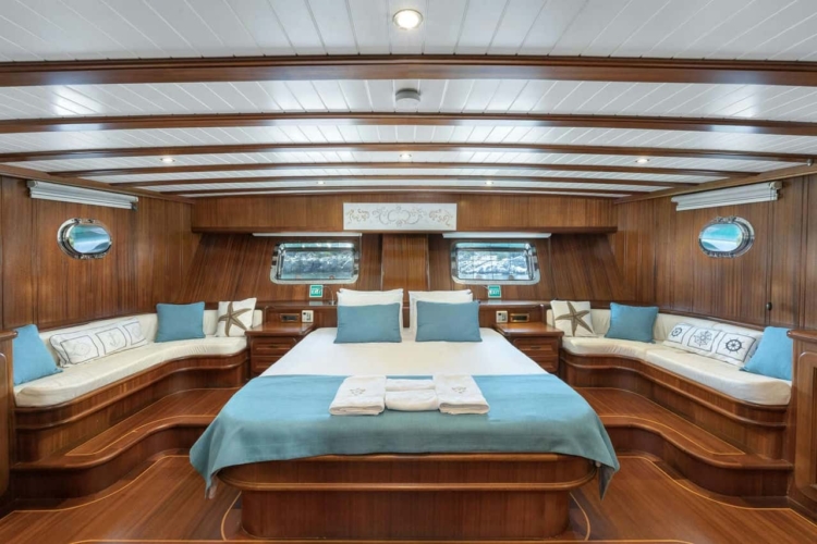 Lorient gulet, 1 Master Cabins, 2 Twin Cabins, 2 Double Kabin bulunan, kendi WC ve klimasıyla birbirinden daha şık ve toplam 5 kabin bulunmaktadir.