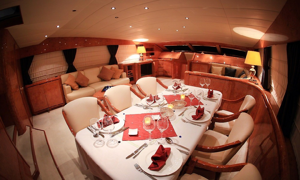 Siz hiç bir şeye karışmadan tatiliniz boyunca size tam pansiyon konaklama sunabiliriz. Bu durumda Standart, Lüks ya da Delüks menülerimizden birini tercih ederek kişi başı günlük 45 ile 65 Euro arasında değişen bir bedel ödeyerek alkollü içecekler hariç herşey dahil tatilinizi yapabilirsiniz. Alkollü içeceklerinizi dilediğiniz şekilde temin edip tekneye getirebilirsiniz.