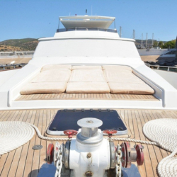 Zemininde tik ağacı kullanılan güvertede arka ve ön kısımda yemek ve oturma alanları, flybridge’te ise panoramik manzaraya karşı keyifli dakikalar geçirebileceğiniz ikinci bir yemek alanı bulunur. Güneşlenme minderleri, deniz merdiveni ve güverte duşu ile tatiliniz boyunca denize erişim ve güneşlenme keyfi bir aradadır.