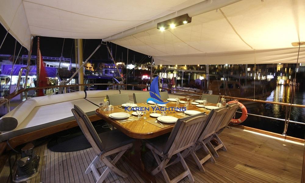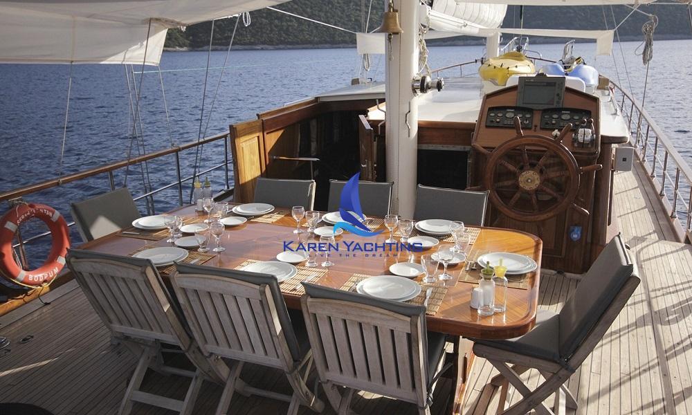 Siz hiç bir şeye karışmadan tatiliniz boyunca size tam pansiyon konaklama sunabiliriz. Bu durumda Standart, Lüks ya da Delüks menülerimizden birini tercih ederek kişi başı günlük 45 ile 65 Euro arasında değişen bir bedel ödeyerek alkollü içecekler hariç herşey dahil tatilinizi yapabilirsiniz. Alkollü içeceklerinizi dilediğiniz şekilde temin edip tekneye getirebilirsiniz.